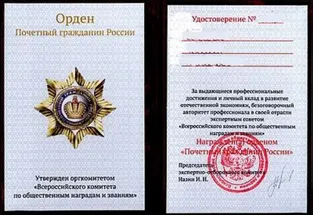 - Орден «Почетный гражданин России» является общественной наградой за многолетнюю и плодотворную деятельность, способствующую укреплению мощи, величия и процветания Российской Федерации.